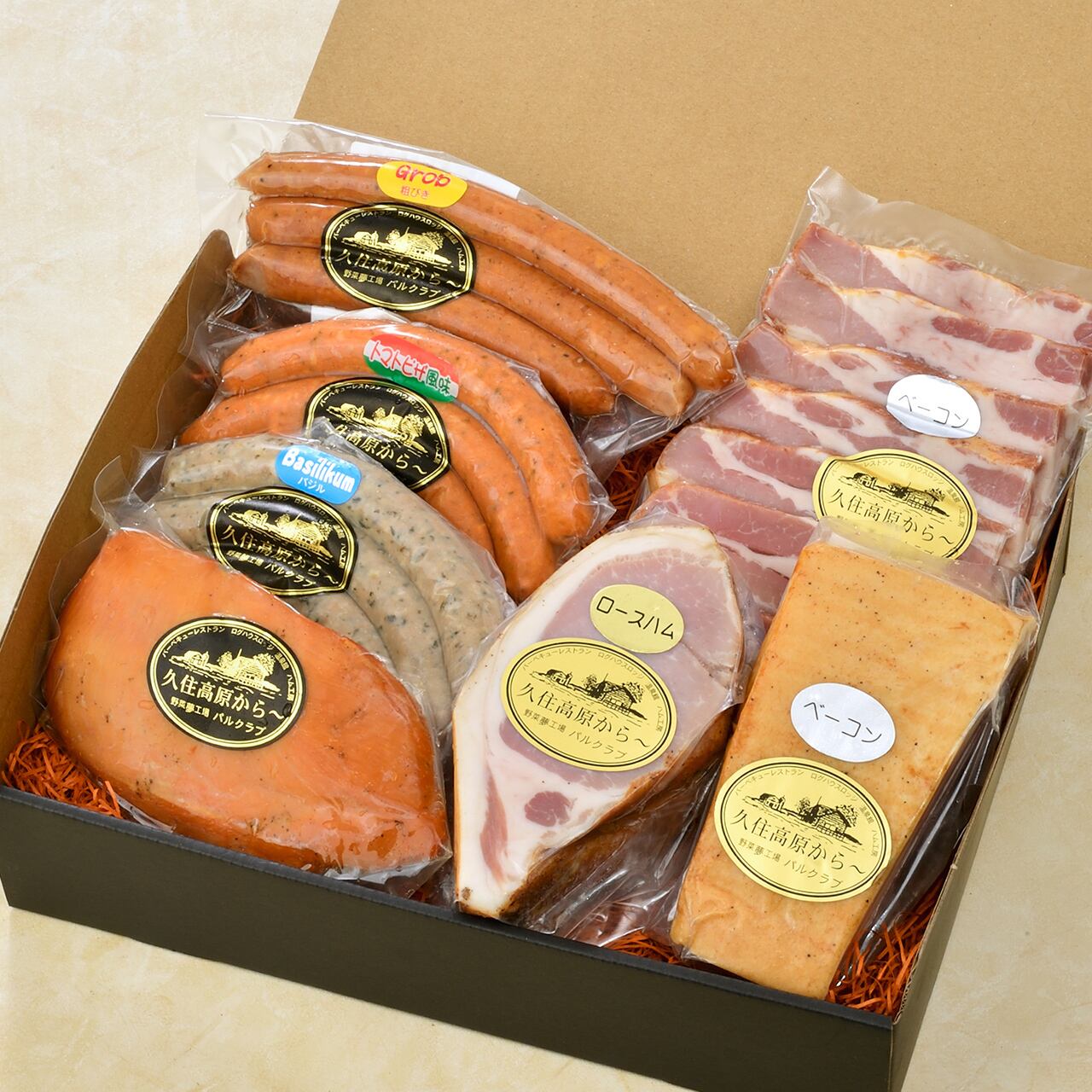 【セット内容】 手作りウインナーソーセージ(あらびき)100g×1 手作りウインナーソーセージ(青じそ)100g×1 手作りウインナーソーセージ(バジル)100g×1 スモークチキン 200g×1 ベーコン(厚切り)200g×1 ベーコン(ブロック)300g×1 くたみ豚モモハム(ブロック)300g×1 原材料/賞味期限:商品の表示ラベルに記載しております。 保存方法:10℃以下で保存して下さい 配送区分:冷蔵 取扱上の注意:賞味期限は未開封で保存した場合の期限です。開封後はできるだけお早めにお召し上がり下さい。